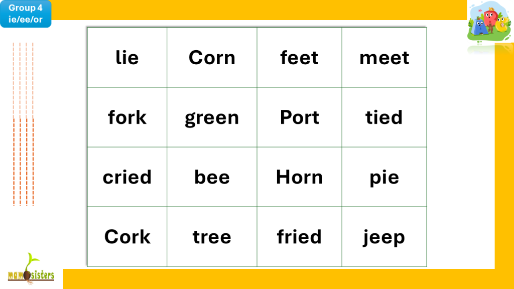 Mình chuẩn bị bảng từ theo nhóm âm.